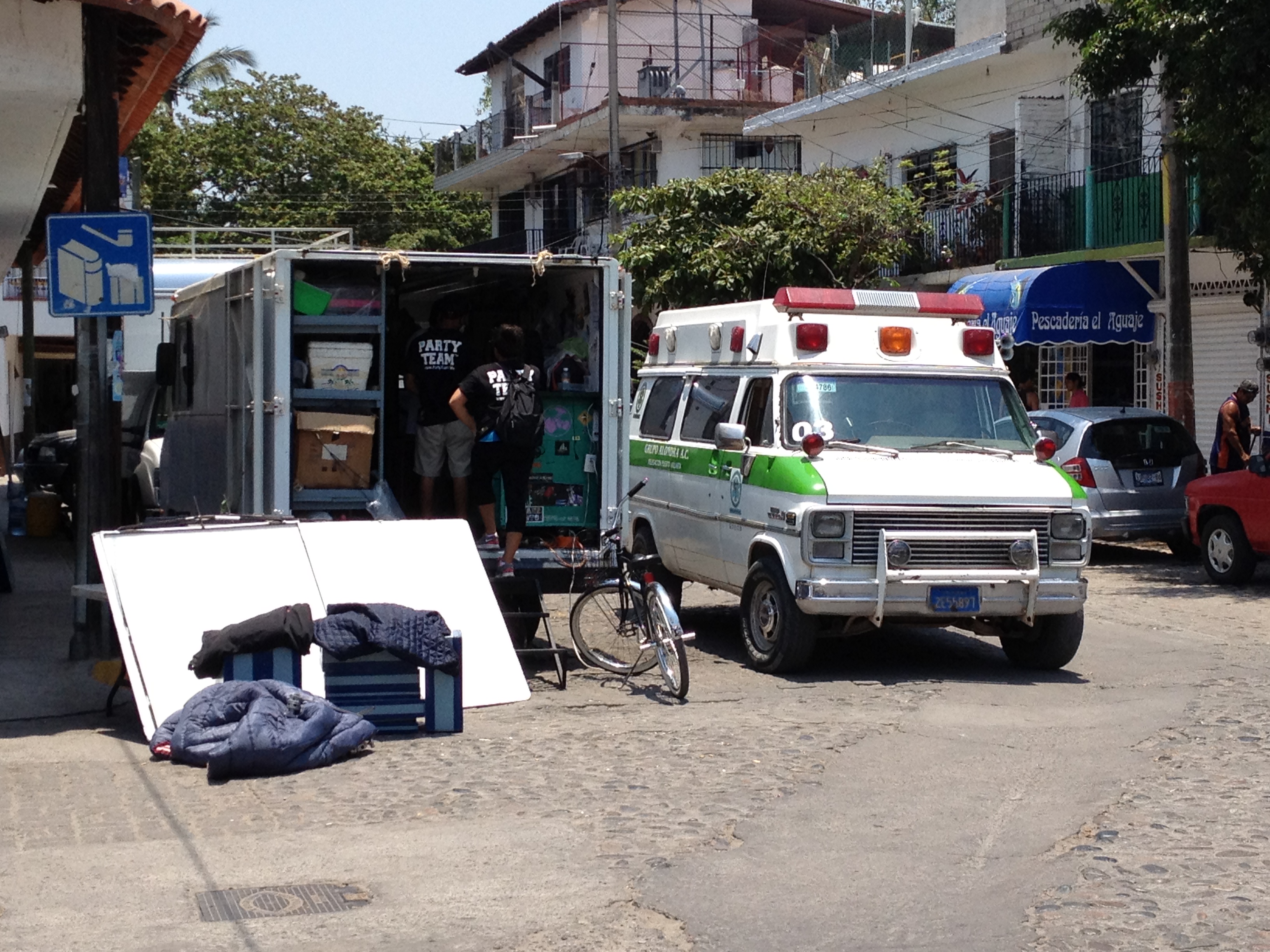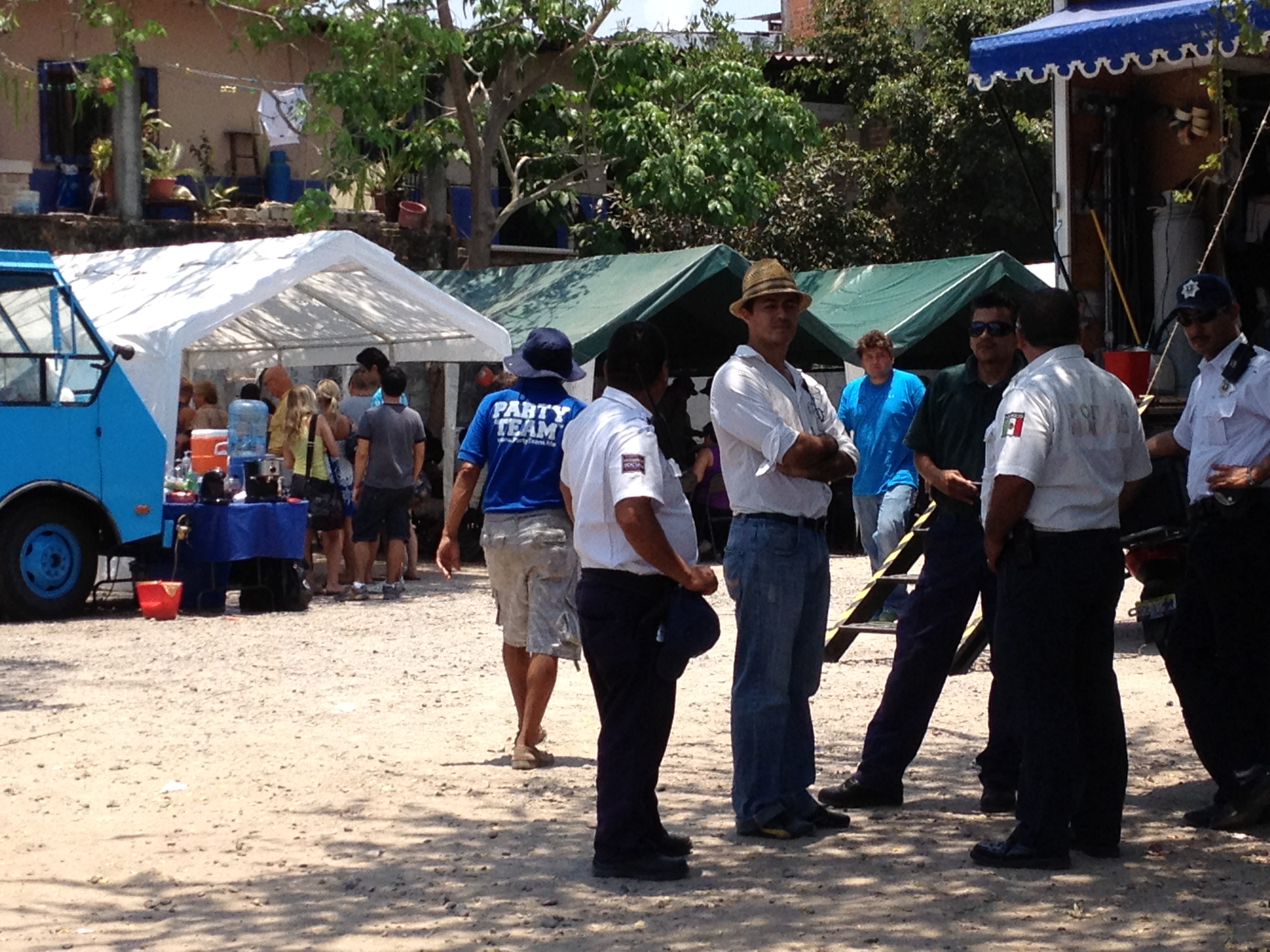 Well along with our blog, we are sure to become famous down here! As we were walking to our local market for supplies for dinner, we saw quite a commotion on the street. Large trucks, cameras, crews and massive people. It appeared they were filming something. The next day we walked by a large open lot where they have set up crews and support and we were stopped to see if we wanted to be an extra in the movie. They were looking for Americans. They need one person to run around naked on a boat but we don’t think the world is ready for that from us, nor are we! They also asked us if we had any children staying here that would like to participate. I think that was a polite way of saying we might be a little too old!! Sounds like it is going to be a ‘Hangover’ type movie. Who knows you might be wanting our autographs soon. Since I am not doing much in the way of work these days, the 500 pesos a day is sounding pretty good!